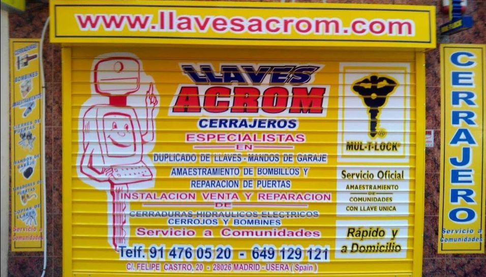 En Acrom, somos especialistas en duplicado de llaves de todo tipo. Con más de 35 años de experiencia, contamos con el mayor surtido de llaves de la Comunidad de Madrid y con la tecnología más avanzada para ofrecerte un duplicado preciso y rápido. Si necesitas copias de llaves, ven a nuestra tienda y obtén las mejores llaves, ¡sin esperar y sin pagar de más!